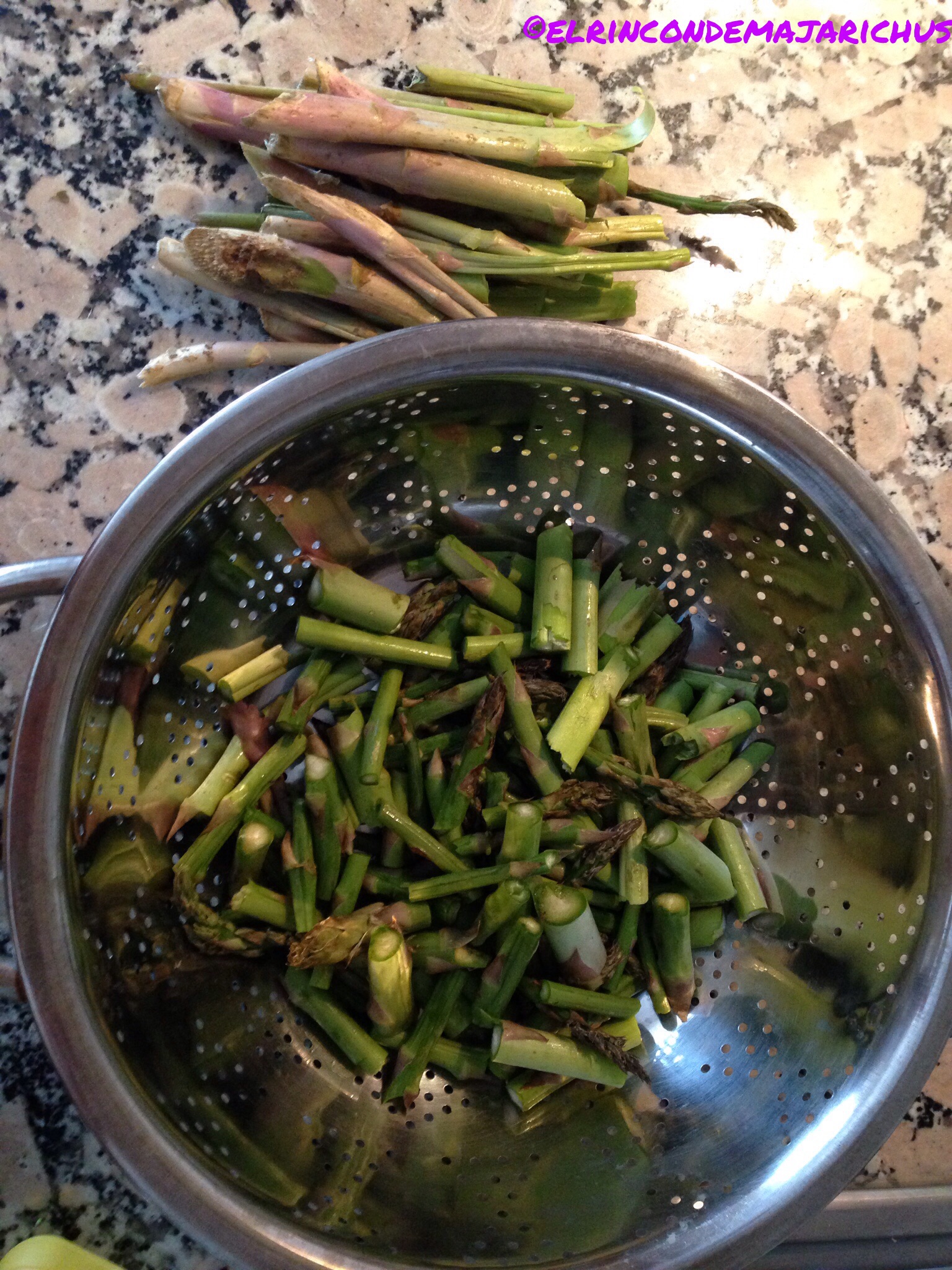 Se lavan los espárragos y se cortan con las manos, hasta donde se puedan romper, las partes duras se desechan.